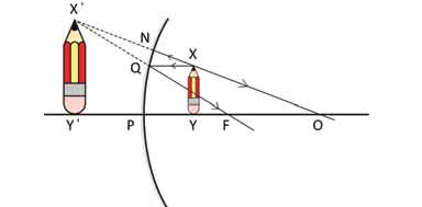 ফোকাস বিন্দু ও মেরু বিন্দুর মাঝখানে ছোট/খর্বিত সোজা অবাস্তব |