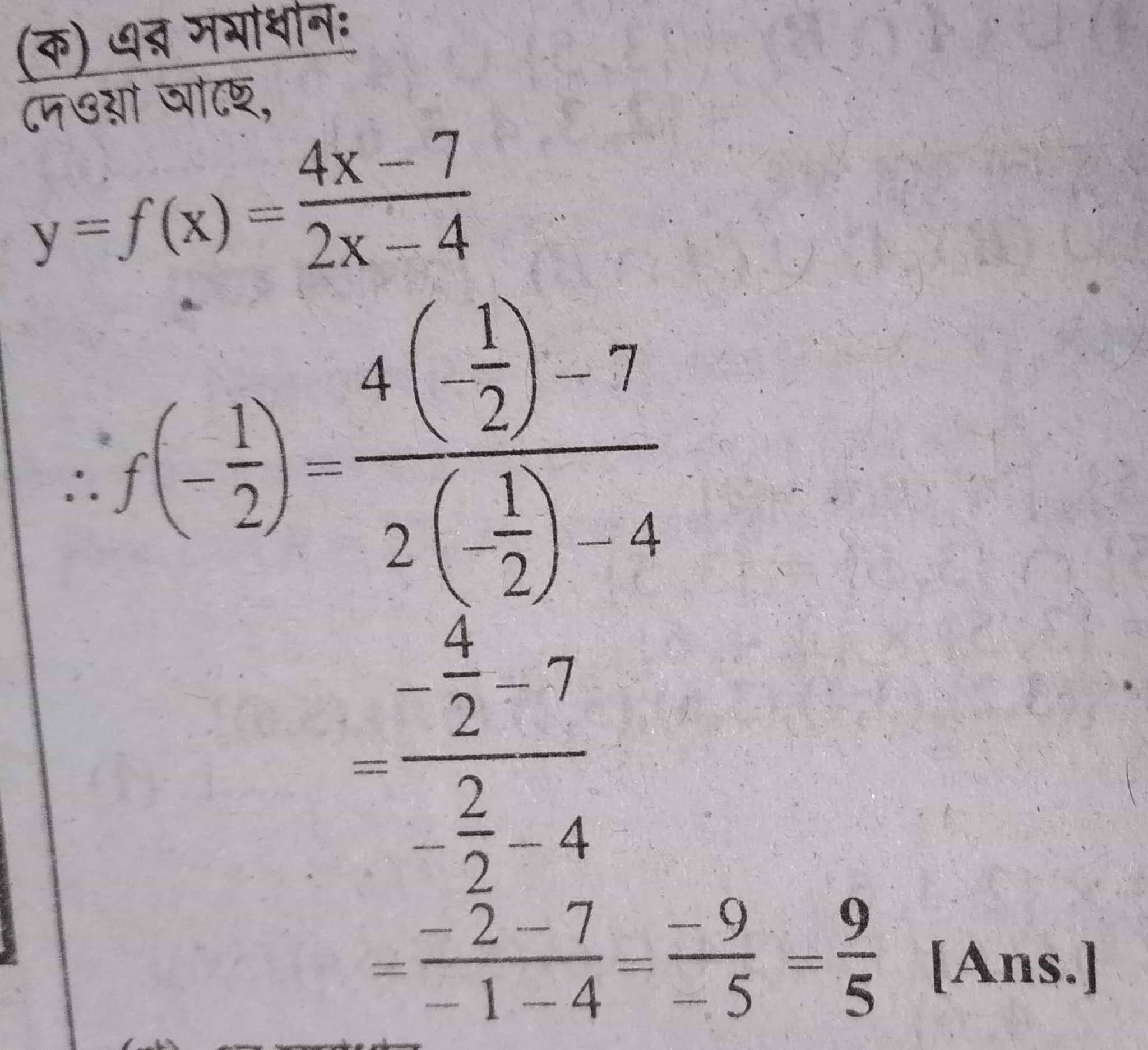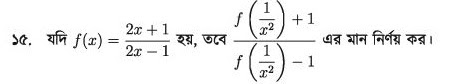 ১২। f(x) = x⁴ + 5x -3 হলে f(-1), f(2) এবং f(1/2) এর মান নির্ণয় কর।
