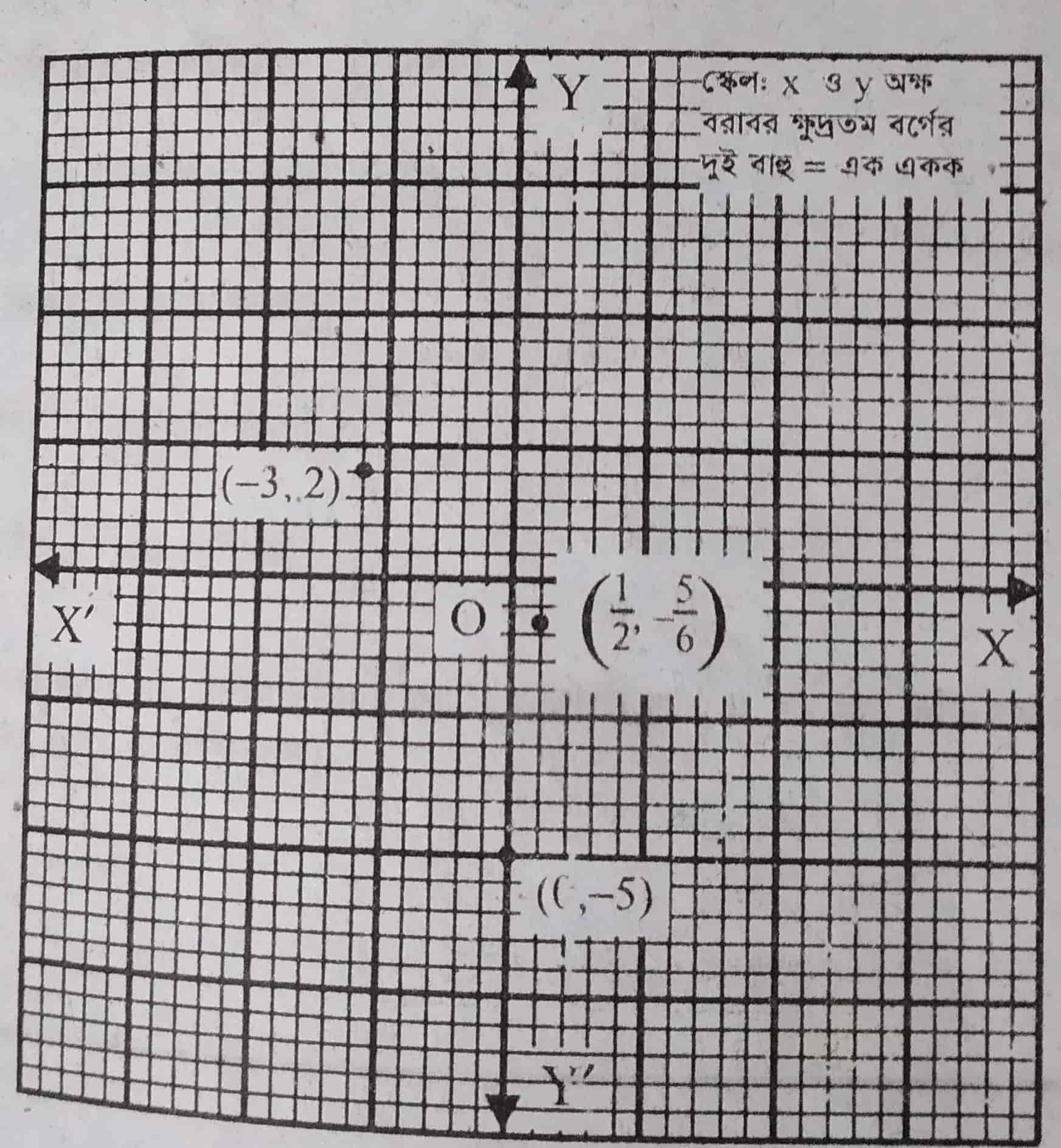১৯। ছক কাগজে (-3,2),(0, -5), (1/2, -5/6) বিন্দুগুলো স্থাপন কর।