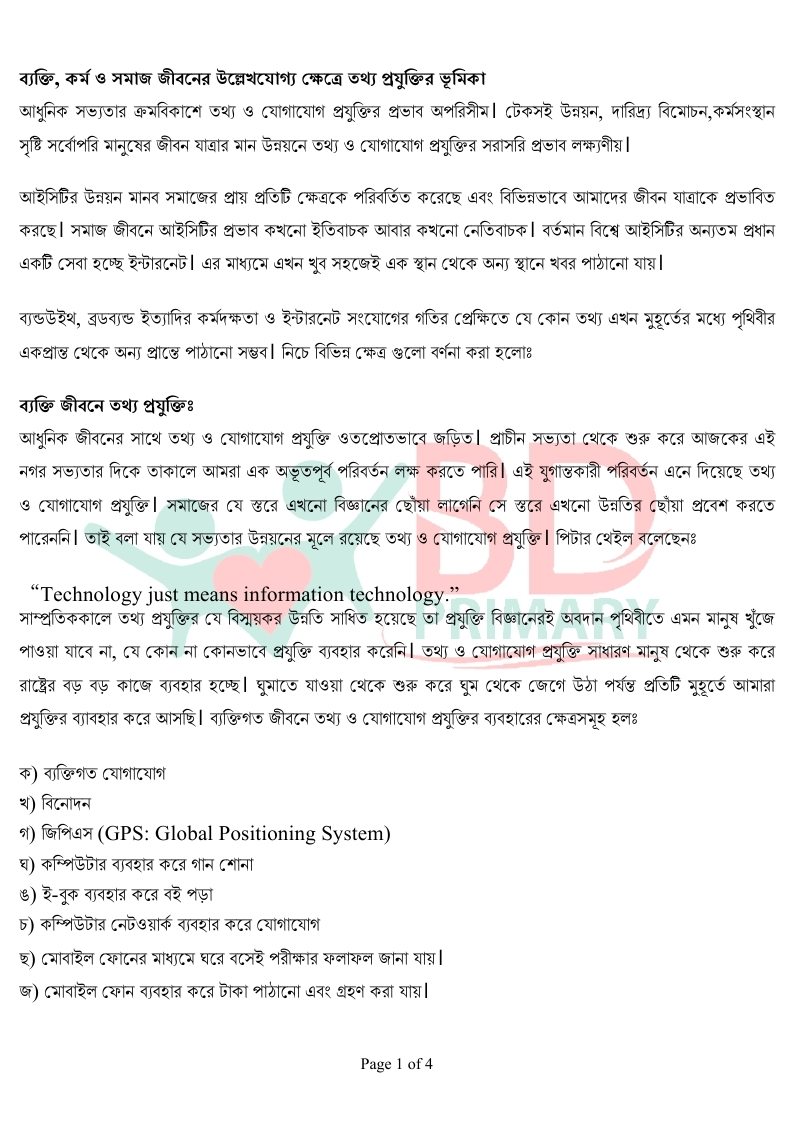 - পাঠ. ১৩ ২: ব্যাক্তি জীবনে তথ্য ও যোগাযোশ প্রযুক্তি