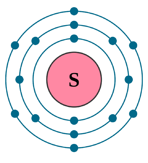 | চিত্রঃ সালফারের ইলেকট্রন বিন্যাস মডেল |